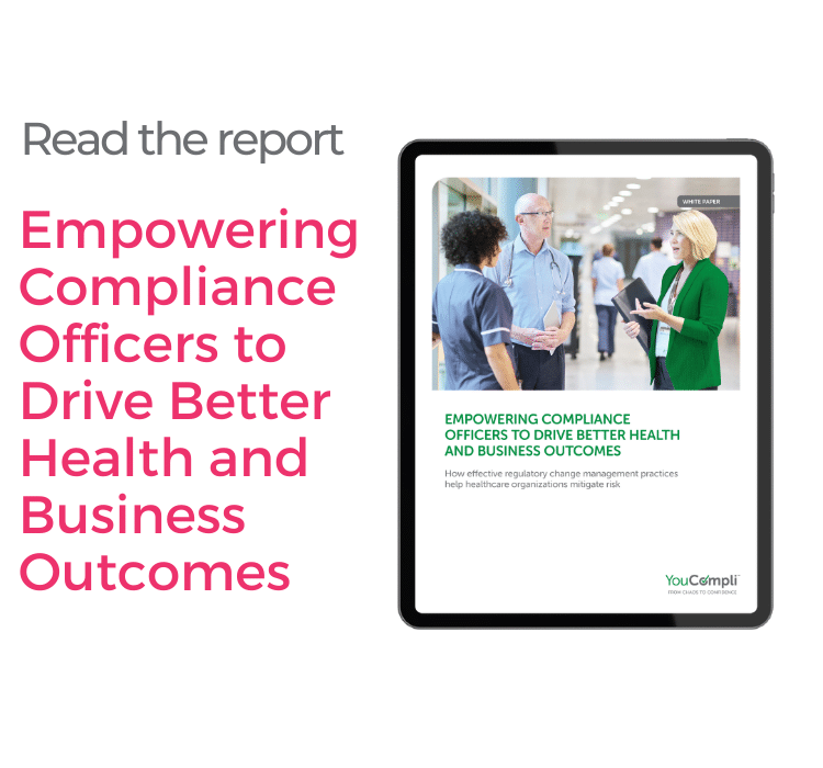 Managing regulatory change is a critical way to avoid enforcement actions. YouCompli is the only healthcare compliance solution that combines actionable, regulatory analysis with a simple SaaS workflow to help you manage regulatory change. Read more about the rollout and accountability of requirements or schedule a demo.